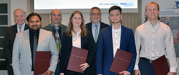 Dr. Ambros Schindler, Prof. Wolfgang Bleck, Prof. Ernst Schmachtenberg (hintere Reihe v.l.), Sven Schumann, Thorben Grosse, Julia Verena Paplau, Christoph von der Heide (vordere Reihe v.l.)